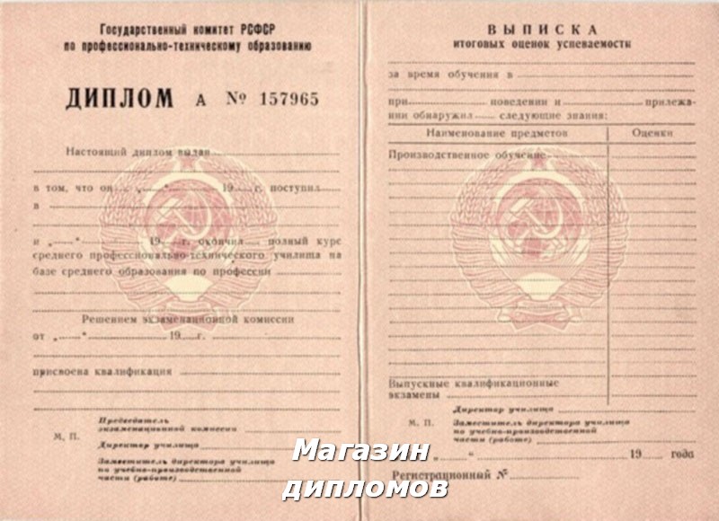 КУПИТЬ ДИПЛОМ О НАЧАЛЬНОМ ОБРАЗОВАНИИ ПТУ СССР